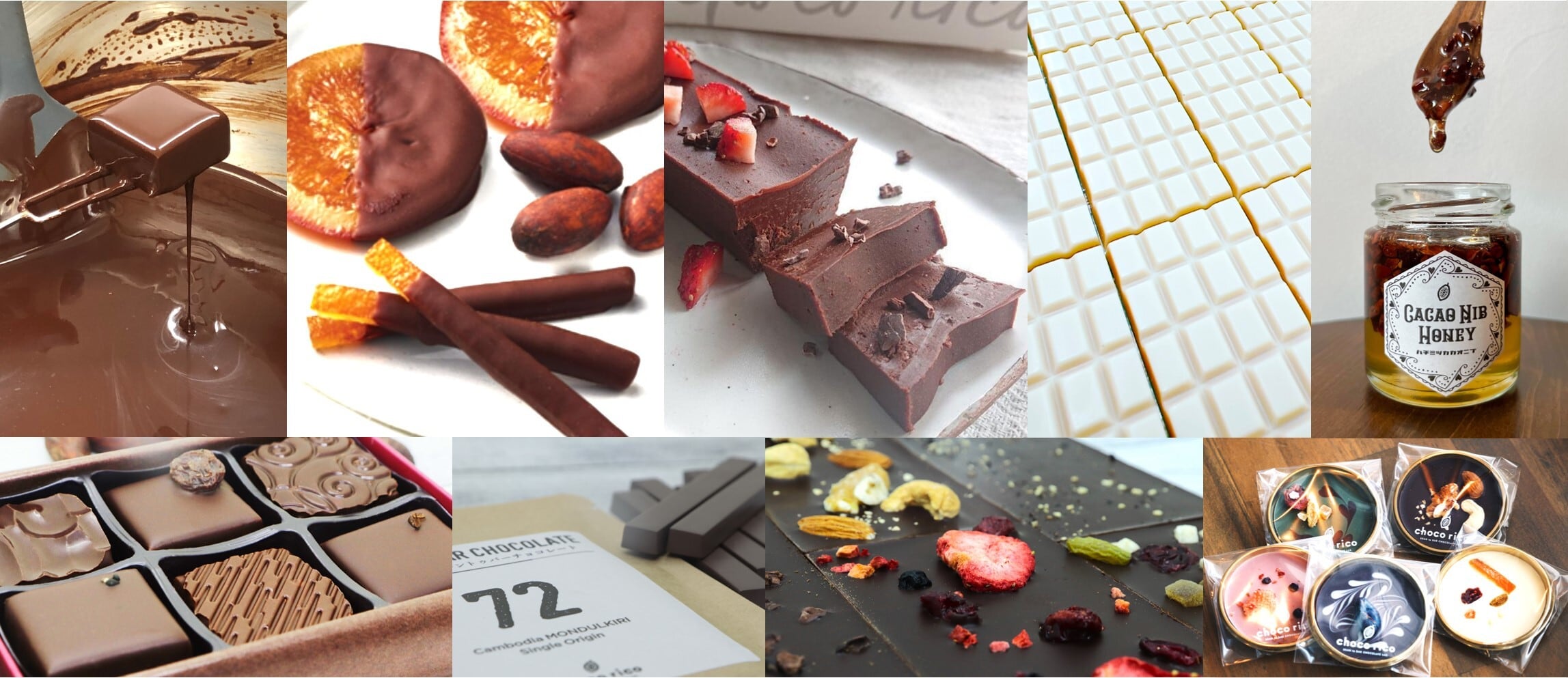 choco ricoのBean to Barチョコレートは、現地のカカオ農園からダイレクトトレードで直接輸入したカンボジア産のオーガニックカカオ豆と、天然パームシュガー(パルミラヤシの花蜜)だけを使用し、自社工房で丁寧に手作りしています。