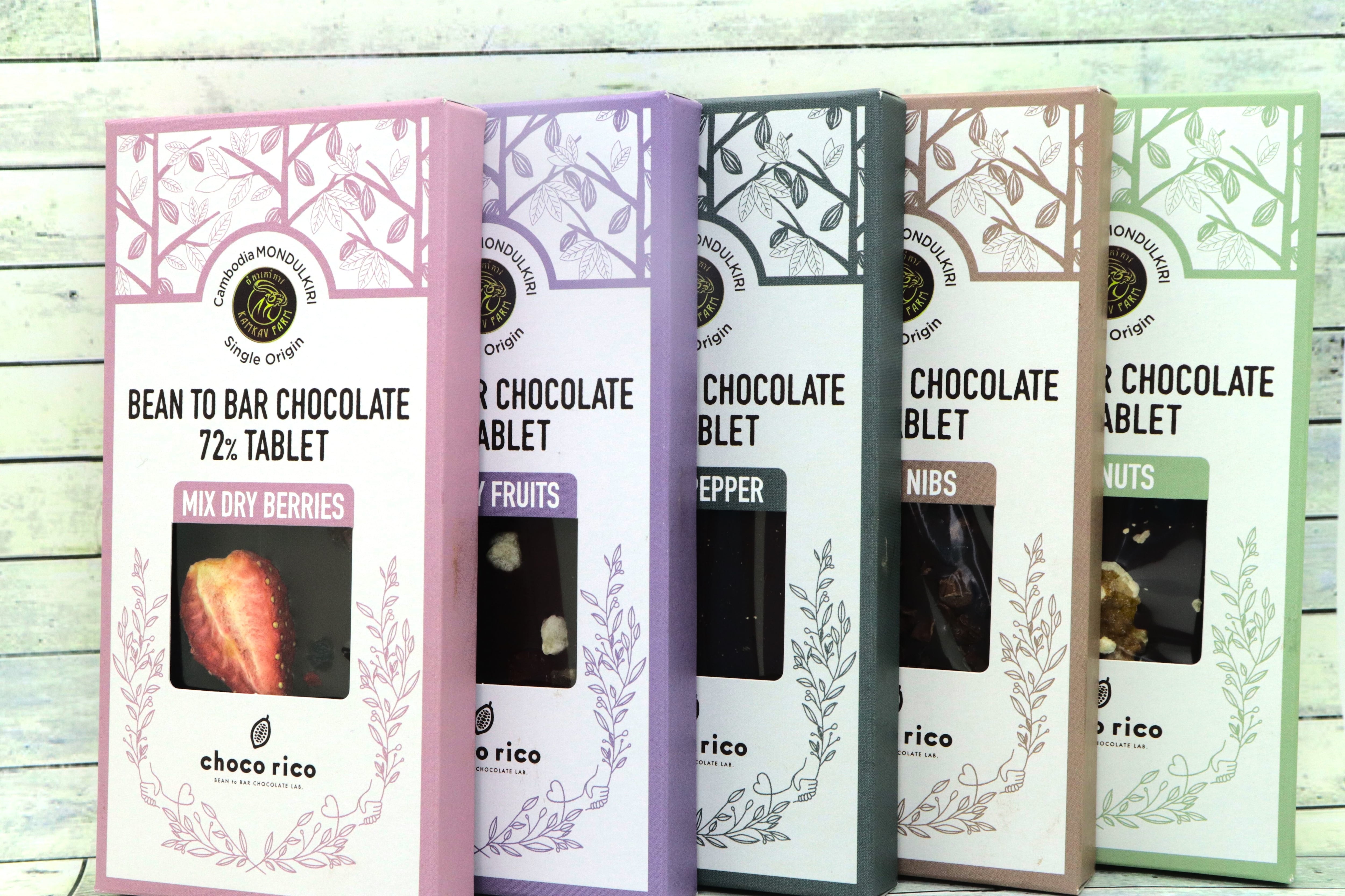 チョコリコのBean to Barチョコレートはカンボジア産オーガニックカカオ豆と天然パームシュガーだけを使用し自社工房で丁寧に手作りしており、白砂糖・添加物・植物油脂不使用で身体に優しく、血糖値が上がりにくいチョコレートです。大切な方へのギフトにも最適です。