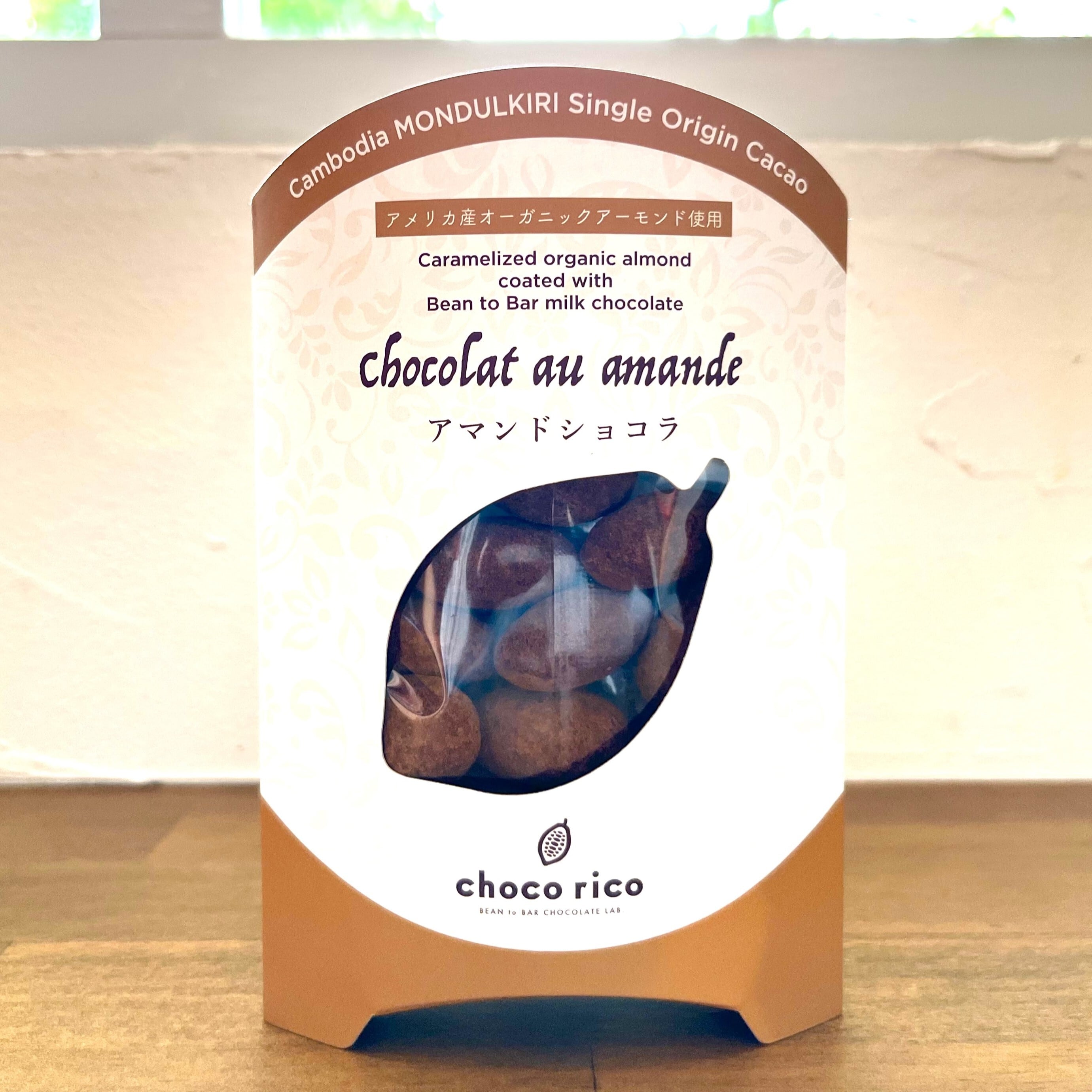 米国カリフォルニアで栽培・収穫されたオーガニックアーモンドを生のまま仕入れ、チョコリコの自社工房で丁寧にロースト&キャラメリゼし、カカオ61%のBean to Barミルクチョコレートで贅沢に何層も手作業でコーティングしました。