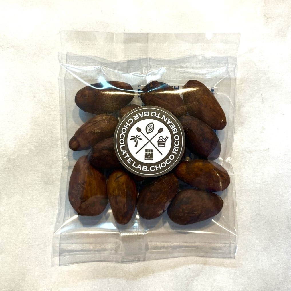 カンボジア産のオーガニックカカオ豆を自社工房でローストし、あえて外皮も内皮も取り除かず “皮ごと” 食べていただくことをご提案している、大変稀少な皮付きローストカカオ豆です。外皮も内皮も付いたままなので、カカオニブに比べてカカオの風味と香ばしさをより強く深く感じることができ、赤ワインやウィスキー系のお酒にもよく合います。