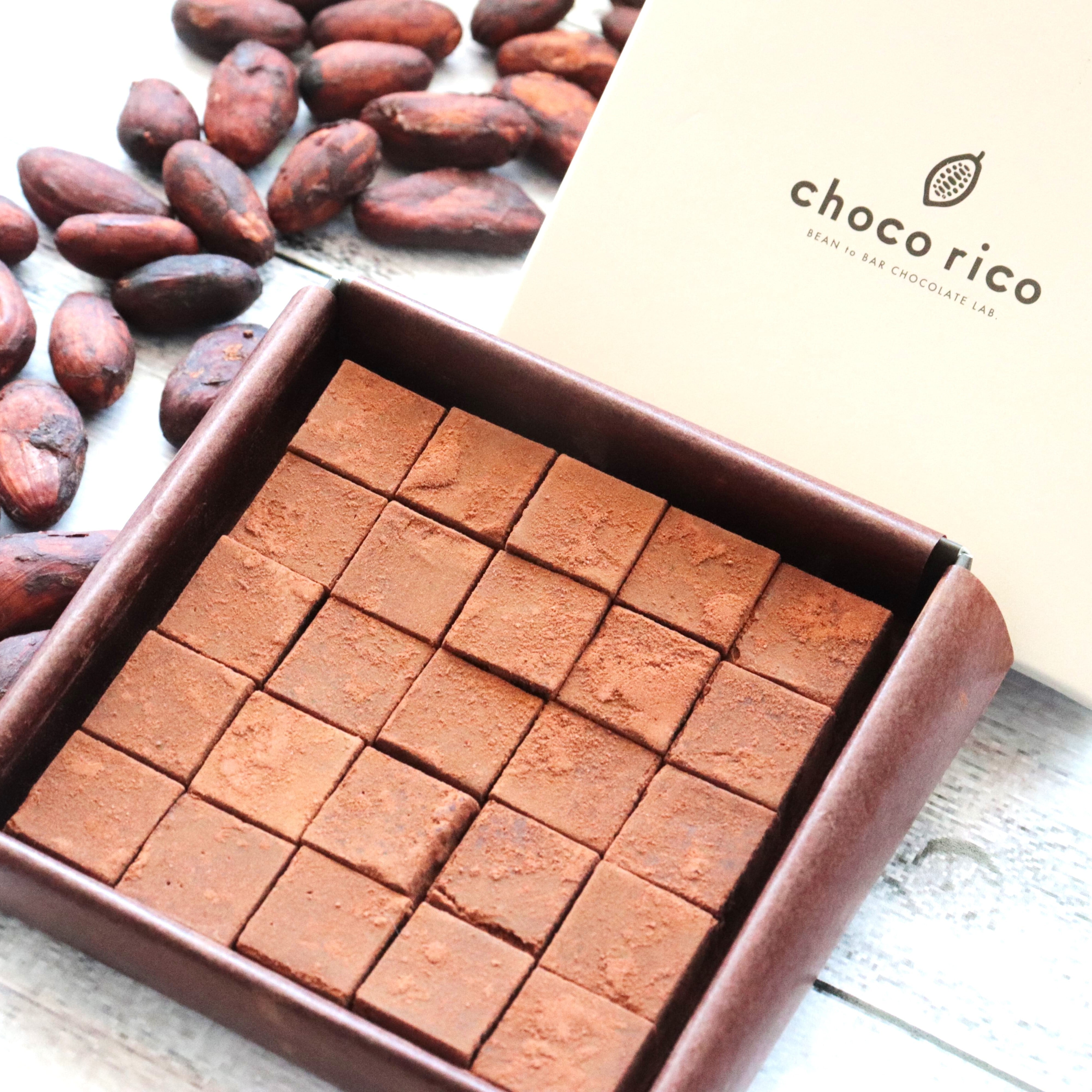 カカオ61%のBean to Barミルクチョコレートに生クリームを加え、カンボジア産のヴァージンココナッツオイルをふんだんに混ぜ込み、香り豊かで口溶けの良い非常にまろやかな生チョコに仕上げました。
