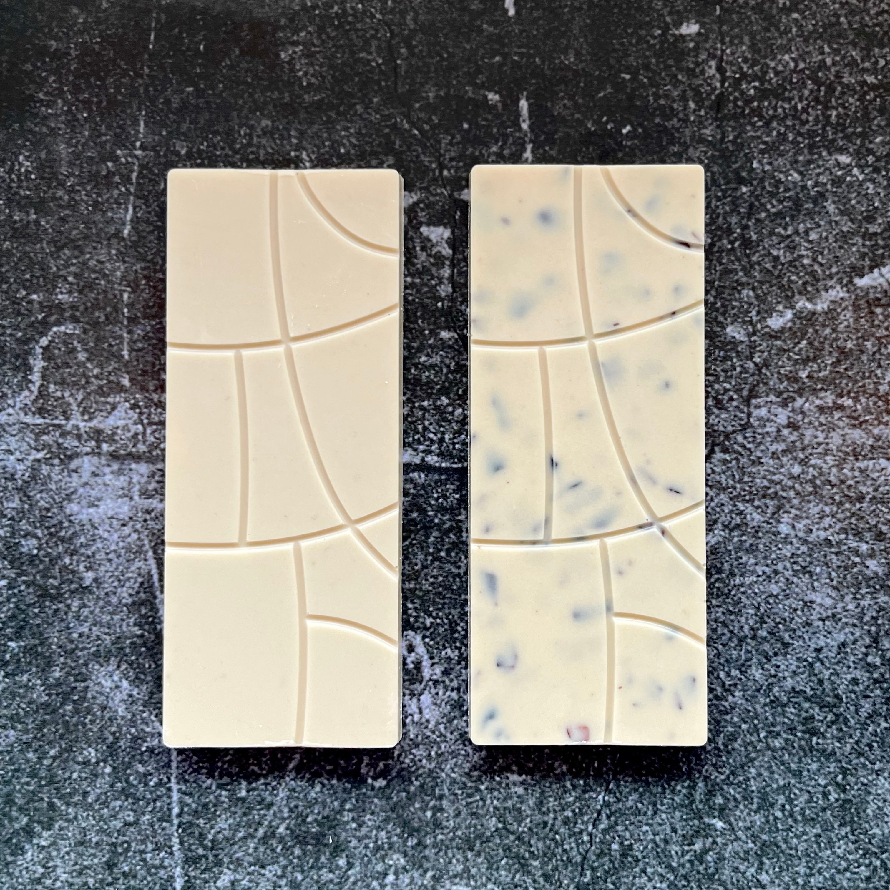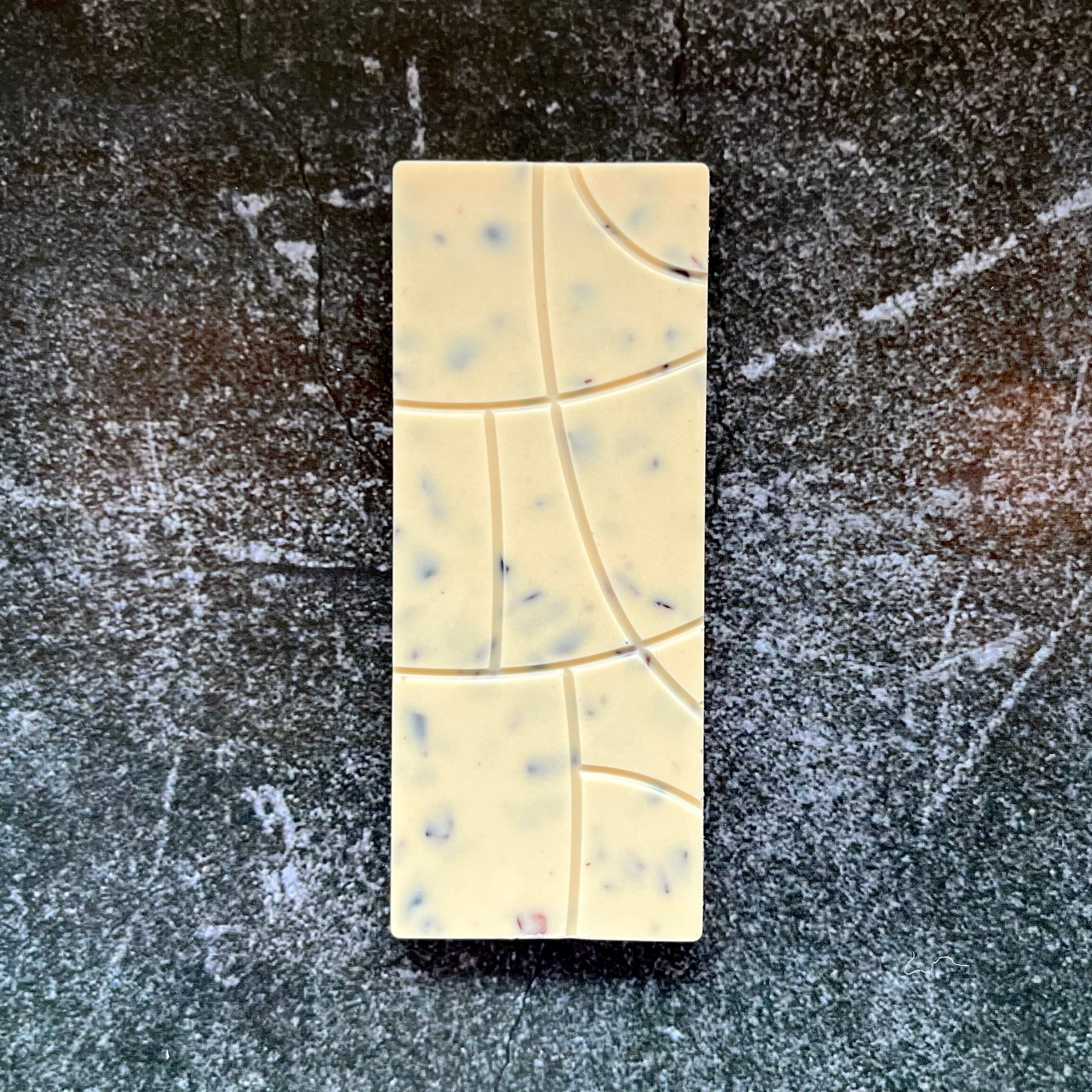 カンボジア産のオーガニックカカオ豆を自社工房で丁寧に手搾りして抽出した自家製カカオバターに、北海道産の全粉乳と奄美諸島産の粗製糖だけを加えた “ビーントゥバー” のホワイトチョコレート。