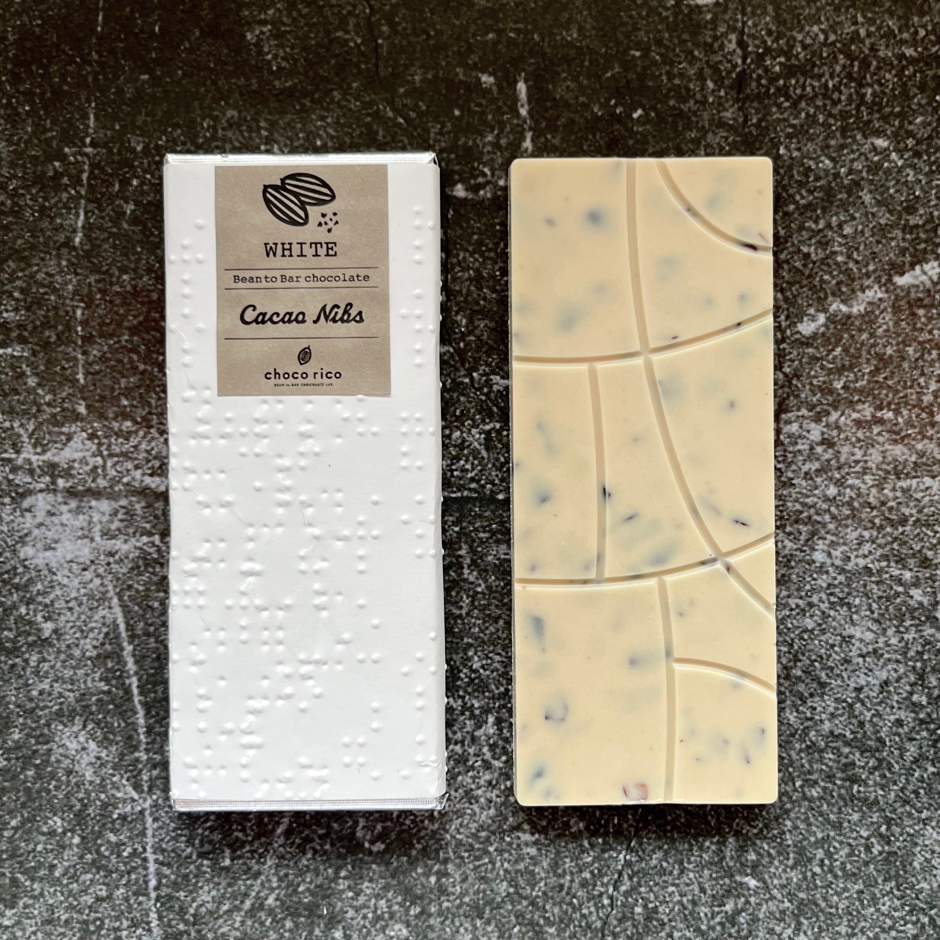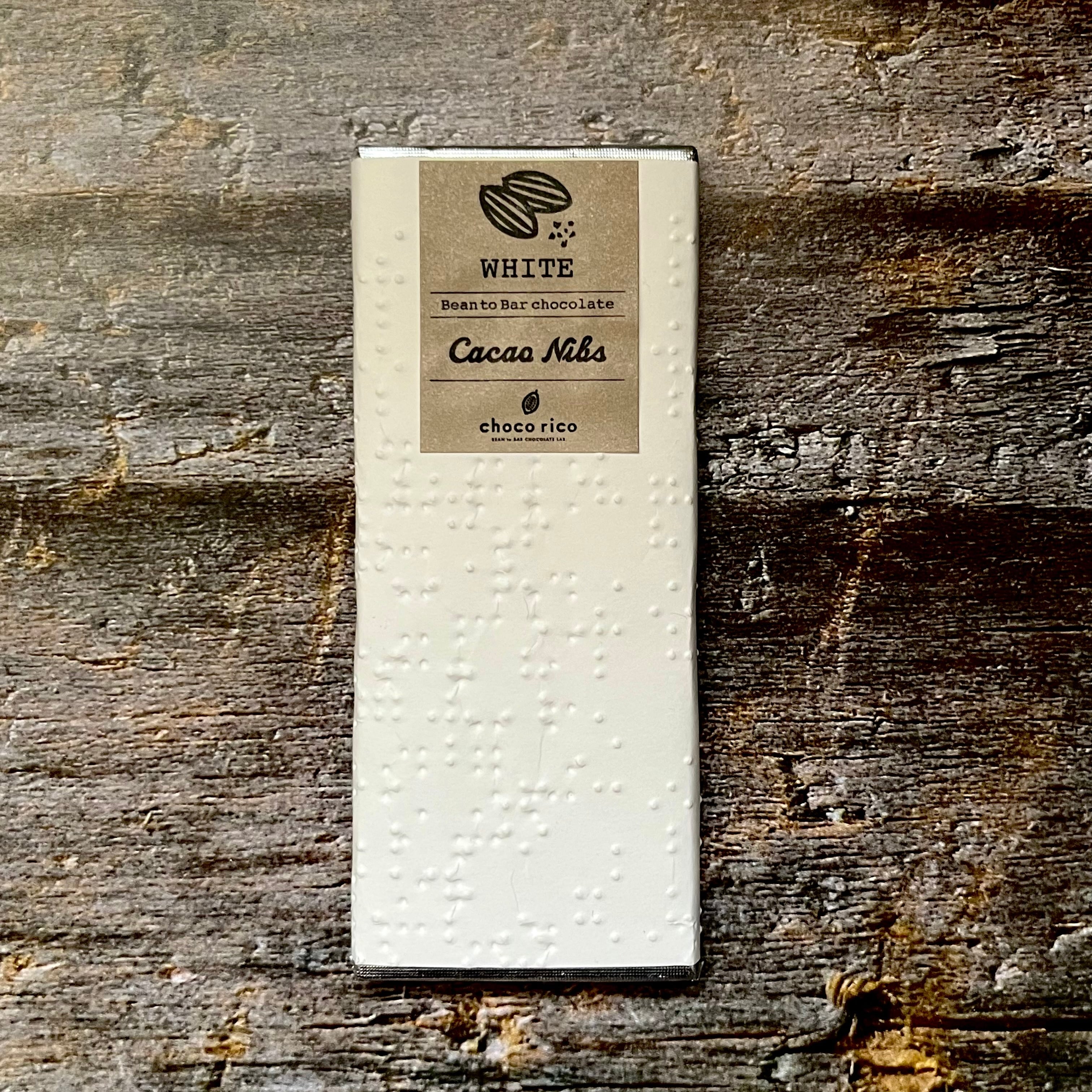そのプレーンタイプのホワイトチョコにカカオニブを程よく混ぜ込み、味も香りも食感もカカオを全身でご堪能いただけるカカオニブ入りのホワイトチョコに仕上げました。