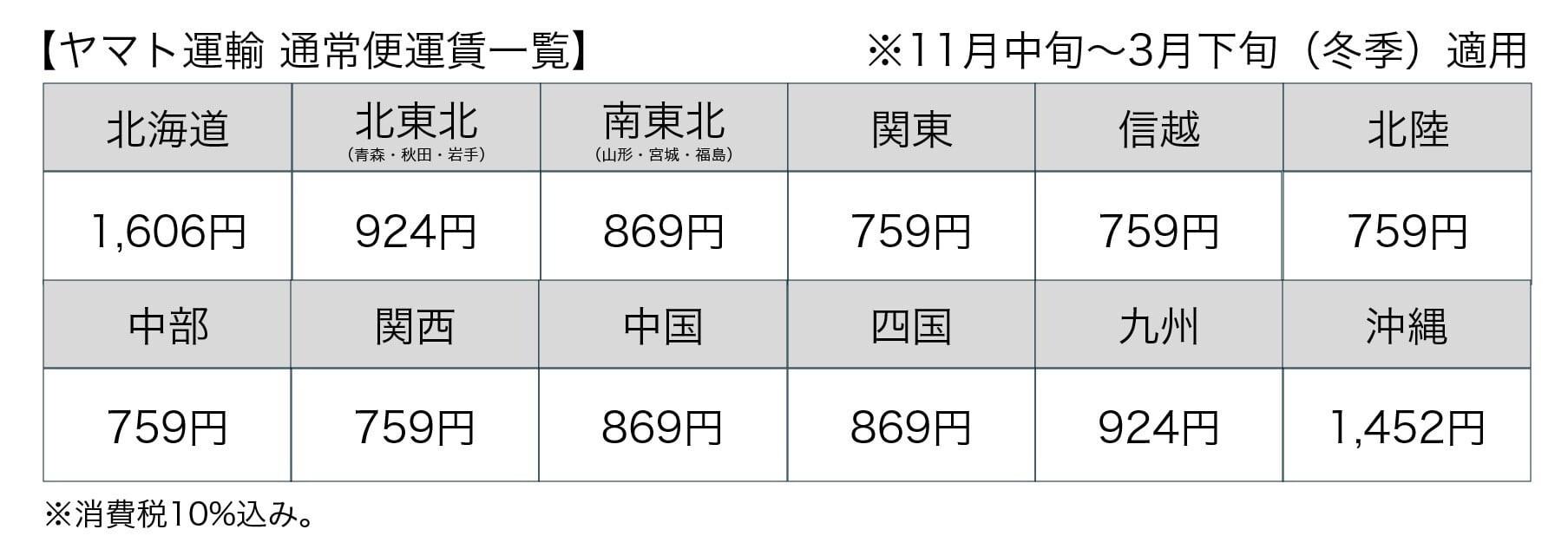 ・冬季(11月中旬ごろ~3月下旬ごろ)は「ヤマト運輸 通常便」での配送となります。