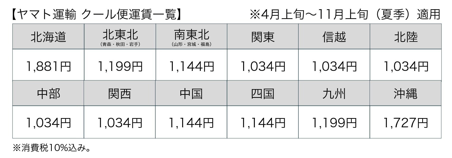 ・夏季(4月上旬ごろ〜11月上旬ごろ)は「ヤマト運輸 クール便」での配送となります。